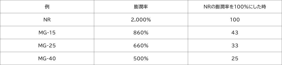 通常の天然ゴム(以下:NR)は油に対する耐性が低いですが、MMAを重合することにより耐油性を向上することができます。