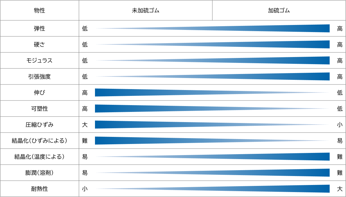 表1. 加硫によるゴムの物性変化
