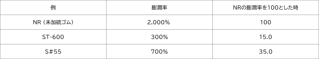 測定条件:サンプル重0.3g、24時間常温乾燥、ゴム揮発油に3時間浸漬